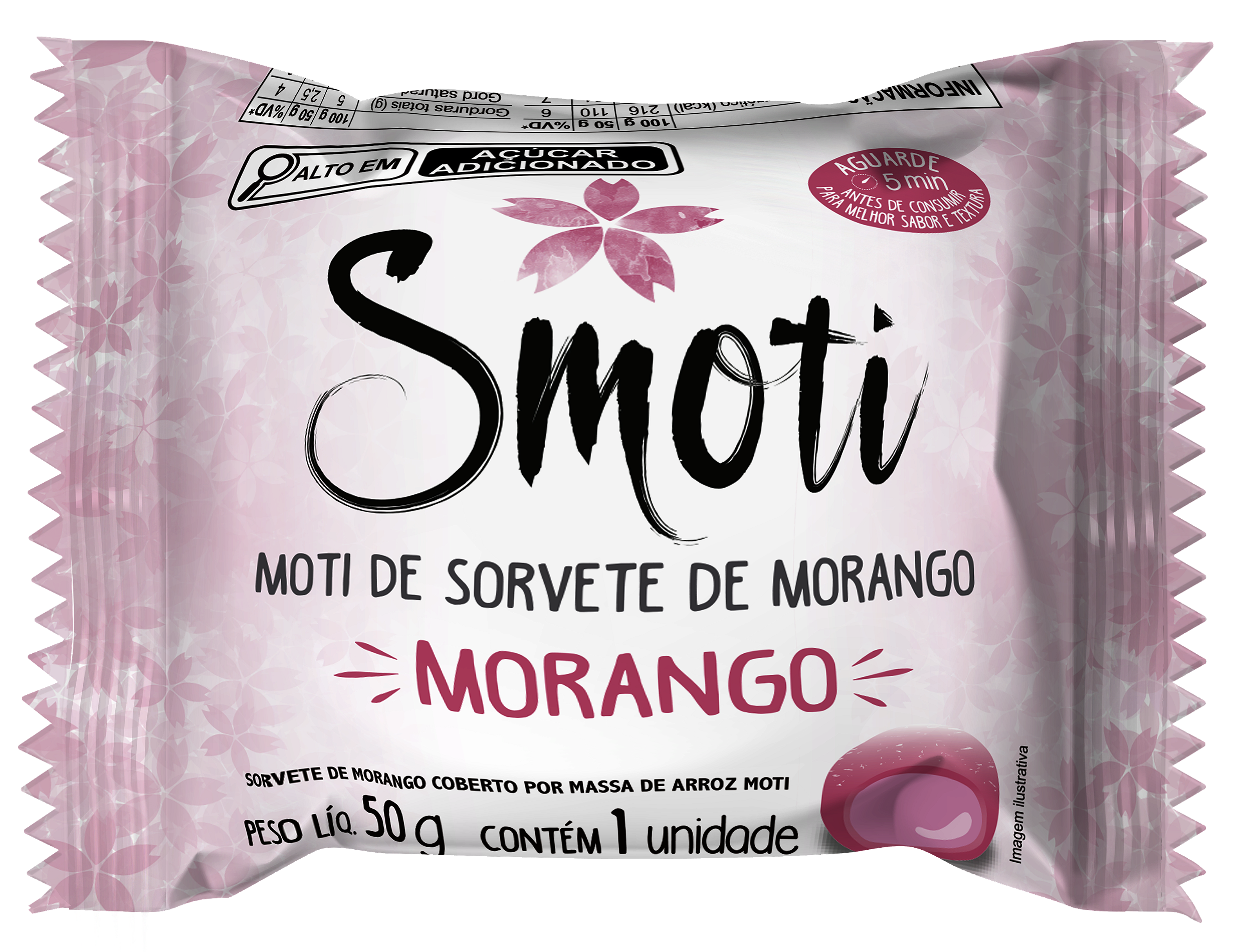 O Moti de Sorvete consiste em uma fina camada de arroz glutinoso envolvendo uma bola de sorvete de morango. Peso: 50g